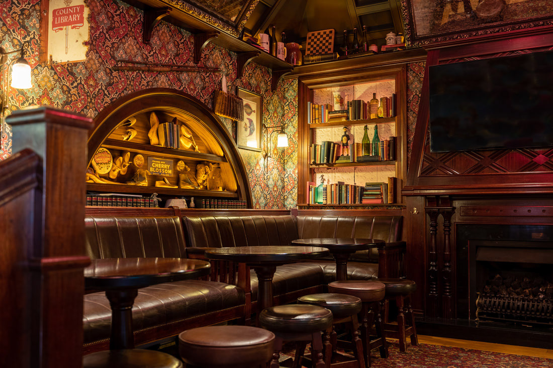 A collection of images of the traditional lounge, bar, and restaurant.